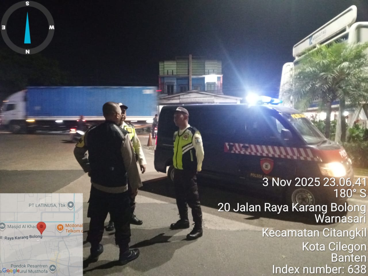Cilegon - Personil Polsek Ciwandan Polres Cilegon Polda Banten Selalu Melaksanaan Kegiatan KRYD (Kegiatan Rutin Yang Ditingkatkan) Patroli Rutin malam hari di daerah hukum Polsek Ciwandan Guna Persempit Ruang Pelaku Tindak Kejahatan, Selasa (04/11/2025).