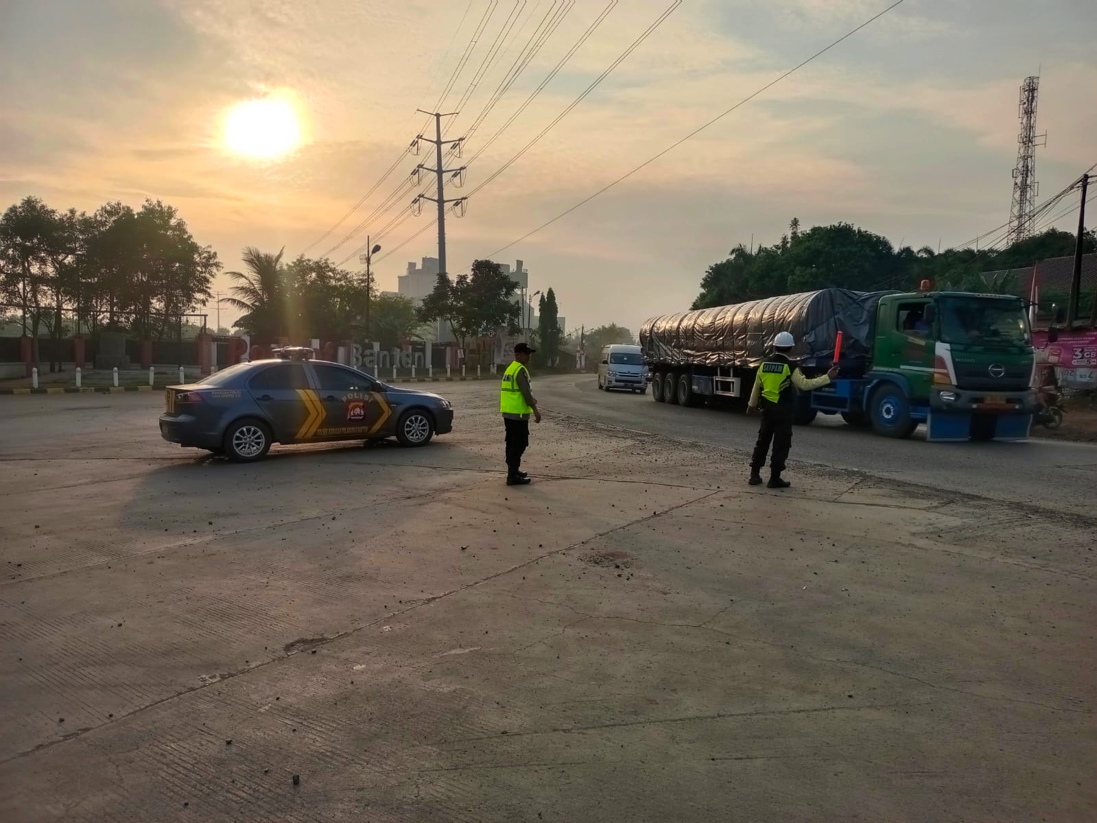 Kapolres Cilegon AKBP Martua Raja Taripar Laut Silitonga Melalui Kapolsek Kskp Banten Polres Cilegon AKP Fredo Leonard menyampaikan Laksanakan Pengamanan Sesuai plotinganya lakukan Pengaturan Supaya Arus Lalu Lintas tetap Berjalan lancar dan Pastikan tidak ada hambatan.