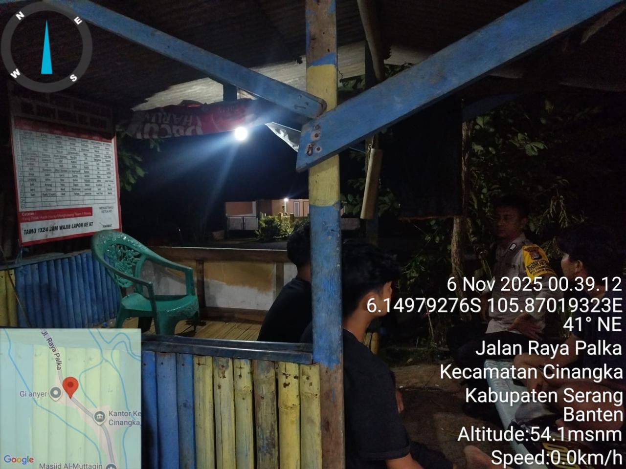 *Polres Cilegon* || Personil Bhabinkamtibmas Polsek Cinangka melaksanakan Program Komandan Wish Kapolda Banten RONDA SATKAMLING menyampaikan komunikasi dengan Petugas Siskamling agar berperan aktif dalam menciptakan Harkamtibmas yang aman dan Kondusif, Kamis (06/11/2025).