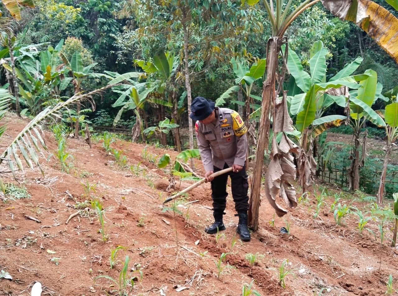 Dalam kesempatan tersebut bahwa Bhabinkamtibmas Polsek Cinangka bersama Kelompok Tani Kec. Cinangka Kab Serang Monitoring dan Pedampingan kegiatan Poktan di wilayahnya lahan yang sedang ditanami Tanaman Jagung dan Palawija.