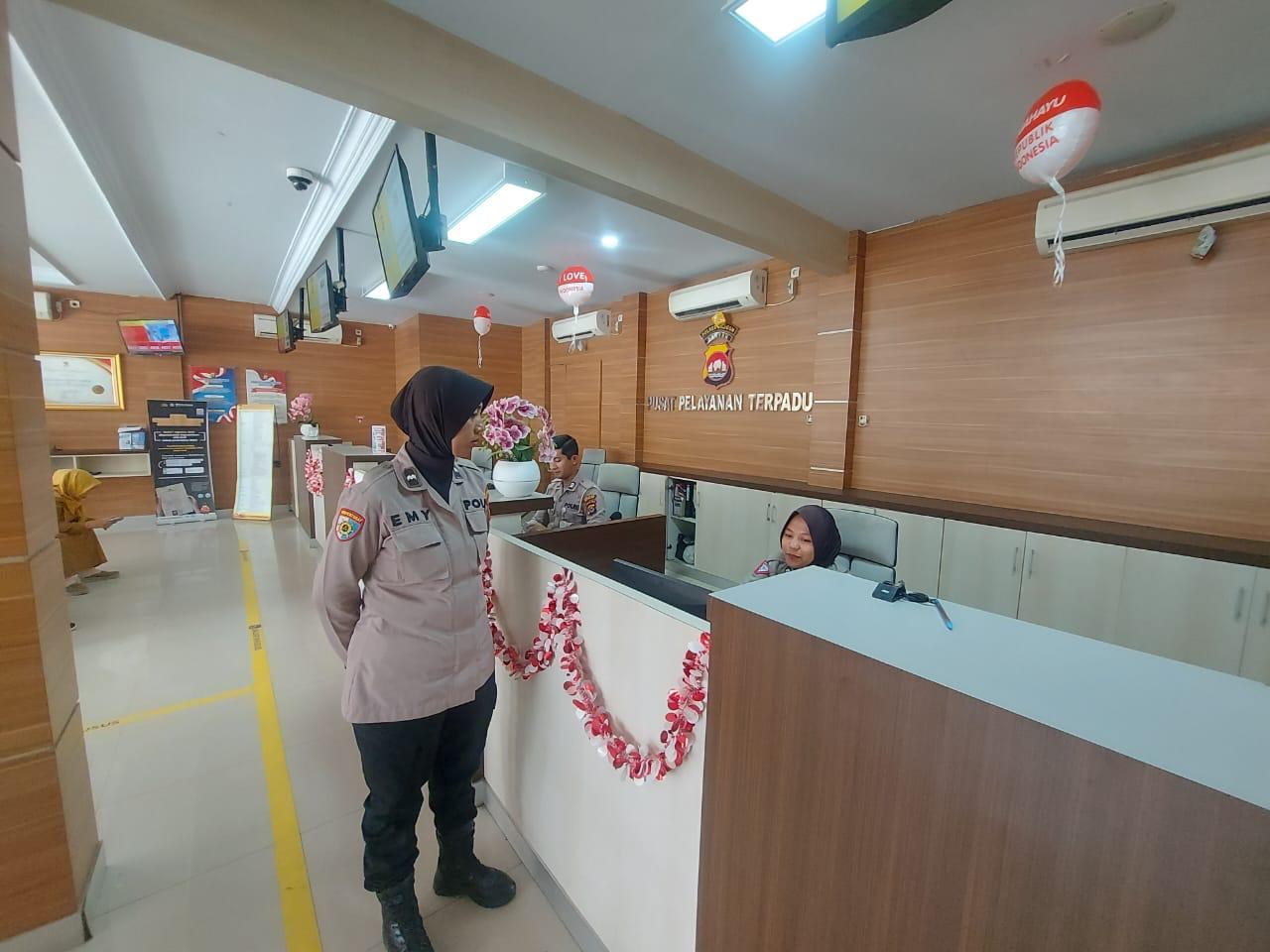 Personil Siwas Polres Cilegon Aipda Emy Prasetyo, turun langsung cek sarana dan prasarana pelayanan publik di Polres Cilegon baik di layanan Sentra Pelayanan Kepolisian Terpadu (SPKT), Surat Ijin Mengemudi (SIM) maupun Surat Keterangan Catatan Kepolisian (SKCK), Jumat (15/11/24).