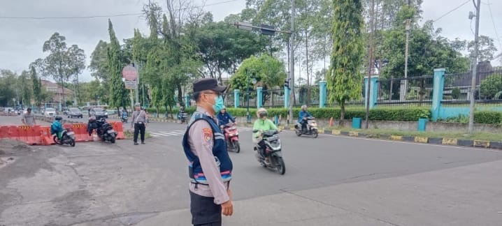 Babinkamtibmas Ramanuju dan Satlantas Polres Cilegon Atur Lalu Lintas Pagi di Simpang ADB