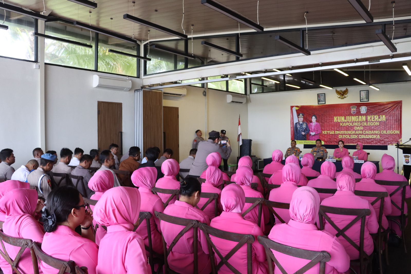 Kegiatan dimulai sekitar pukul 10.40 WIB dengan penyambutan rombongan, dilanjutkan pembukaan, menyanyikan lagu Indonesia Raya, dan pembacaan doa. Dalam kesempatan tersebut, Kapolsek Cinangka IPTU Rusnata menyampaikan ucapan selamat datang kepada Kapolres dan Ketua Bhayangkari Cabang Cilegon beserta jajaran, serta menyampaikan rasa hormat dan terima kasih atas perhatian pimpinan terhadap personel di tingkat Polsek.