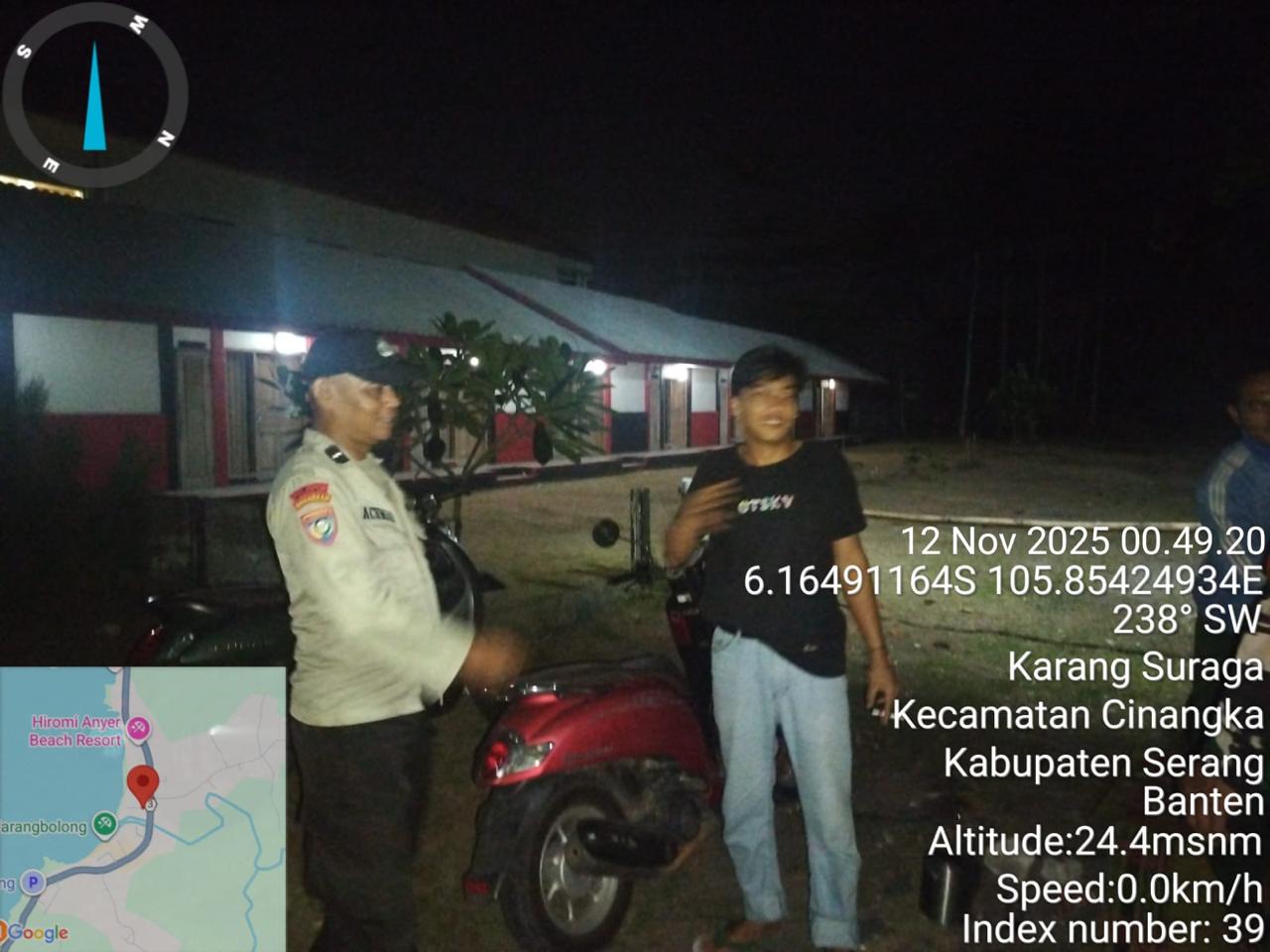 *Cilegon* – Dalam Rangka Pencegahan Kejahatan Jalanan dan Memelihara situasi keamanan dan menjaga serta memberikan rasa aman dan nyaman di masyarakat,Salah satu upaya untuk mewujudkan hal tersebut sebagaimana yang dilakukan oleh Personil Polsek Cinangka Polres Cilegon Polda Banten melaksanakan giat patroli blue light malam hari hingga menjelang pagi, Rabu (12/11/2025).