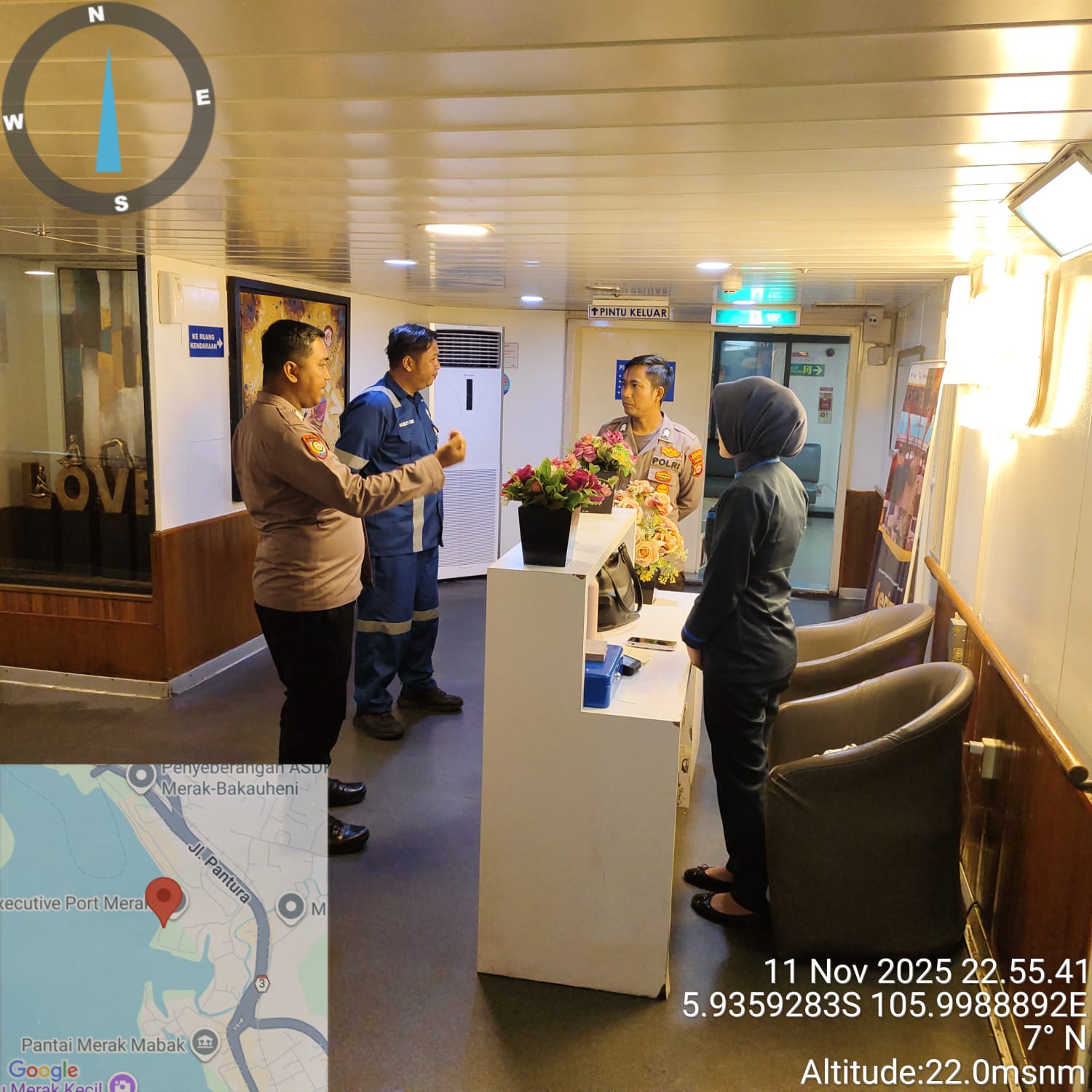 Cilegon - Personil Polsek Kskp Merak Polres Cilegon melaksanakan patroli di kawasan pelabuhan merak memberikan rasa aman dan damai, Rabu (12/11/2025)