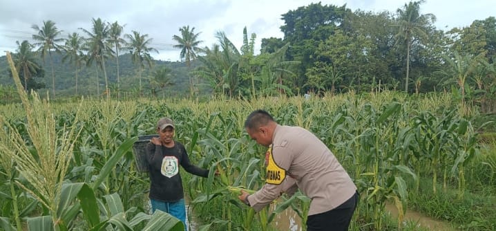 BHABINKAMTIBMAS KELURAHAN PABEAN LAKUKAN GIAT DUKUNG KETAHANAN PANGAN DENGAN PANEN JAGUNG MANIS BERSAMA PETANI