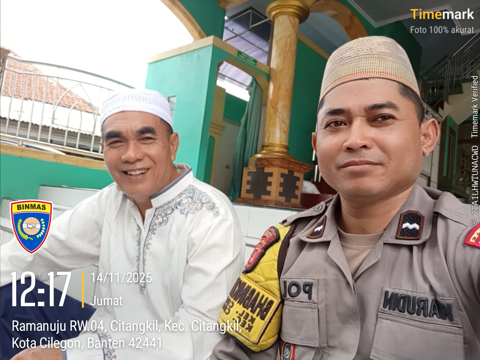 Cilegon - Dalam Rangka Implementasi Program Kapolda Banten Yaitu Sholat Jum’at Keliling Dan Berjama’ah Serta Memakmurkan Masjid Bhabinkamtibmas Polsek Ciwandan Polres Cilegon Polda Banten Sholat Berjama’ah dan Bersilaturahmi Bersama masyarakat sebagai upaya meningkatkan Ukhuwah Islamiyah dalam menjalin silaturahmi dan membangun komunikasi yang baik,Jum’at (14/11/2025).