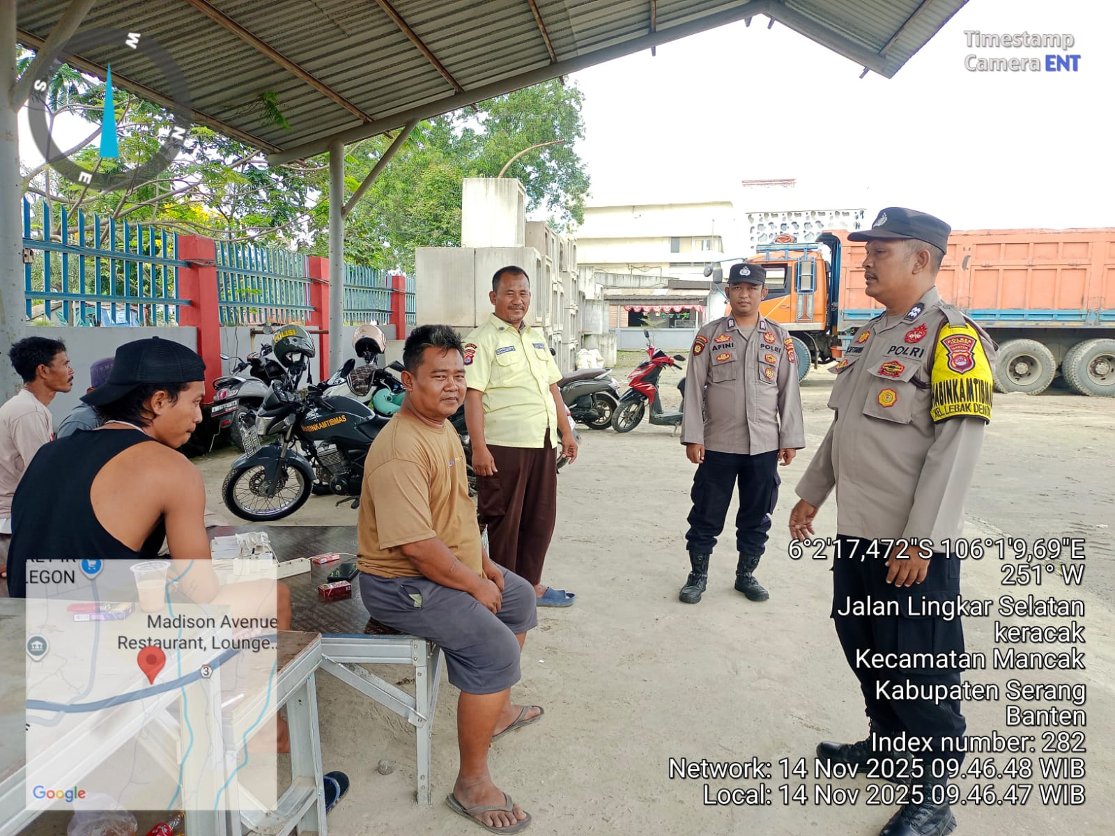 Cilegon - Demi Menjaga keamanan Daerah Hukum Polsek Ciwandan agar tetap kondusif, Personil Polsek Ciwandan Polres Cilegon Polda Banten Melakukan kegiatan sambang kamtibmas Dan Patroli Bersama Security, Jum’at (14/11/2025).