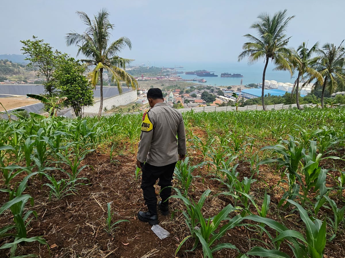 Bhabinkamtibmas Polsek Pulomerak Dukung Program Ketahanan Pangan, Lakukan Perawatan Tanaman Jagung