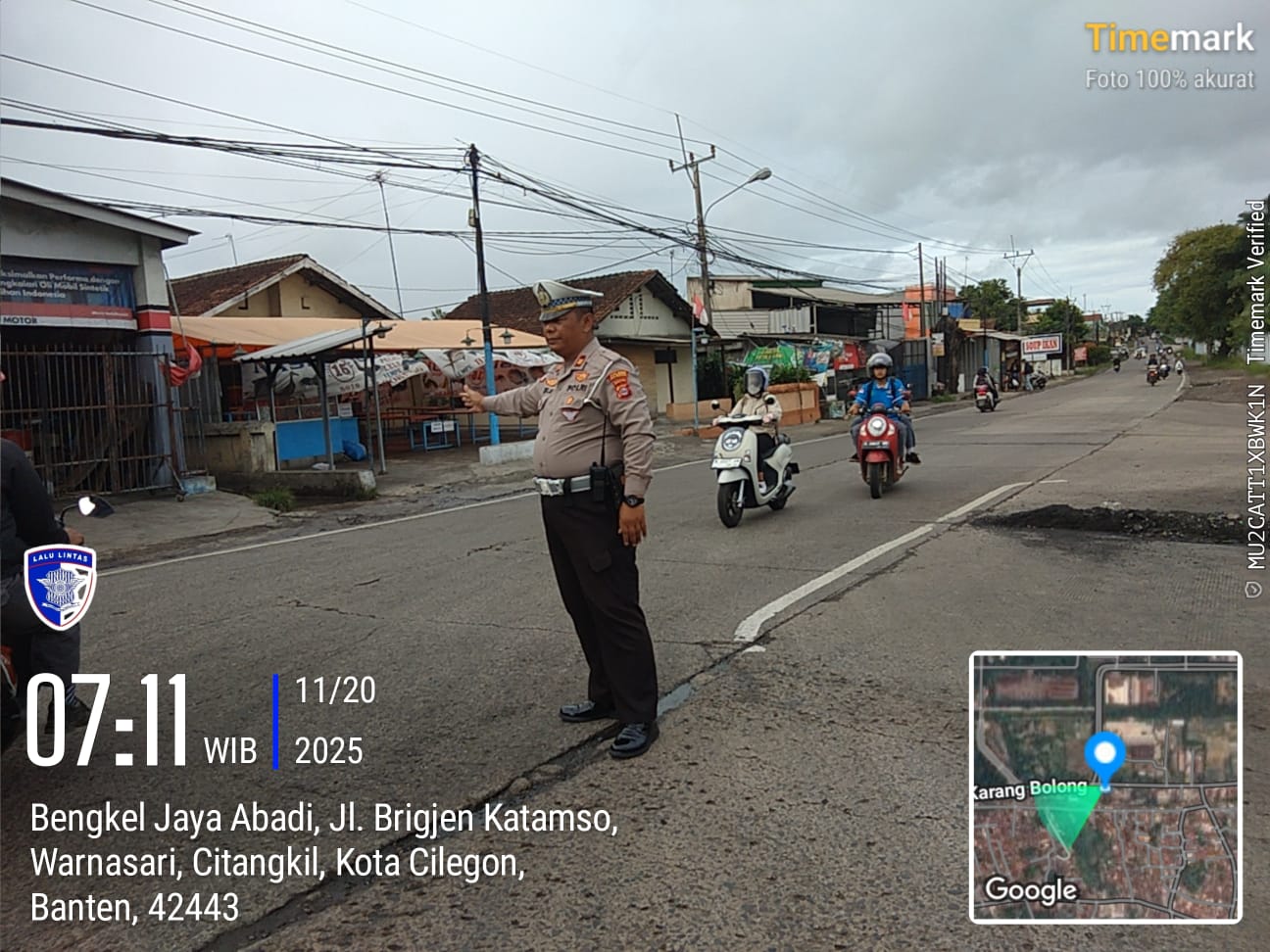 Cilegon - Dalam Mewujudkan Aksi Nyata Pelayanan Kepada Masyarakat,Personil Polsek Ciwandan Polres Cilegon Polda Banten Laksanakan Strong Poin Pengaturan Lalu-lintas, Kamis (20/11/2025).