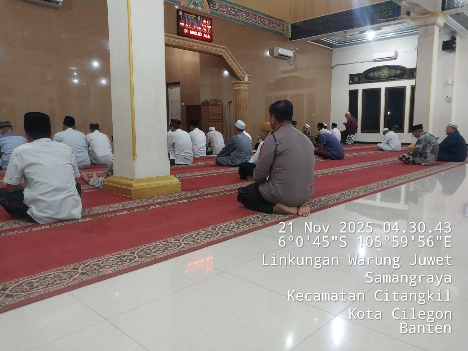 Cilegon - Dalam Rangka Implementasi Program Subuh Keliling Kapolda Banten Dan Kapolres Cilegon Polda Banten Bhabinkamtibmas Polsek Ciwandan Polres Cilegon Polda Banten melakukan Sholat Subuh Berjama’ah bersama warga masyarakat, Jum'at (21/11/2025).