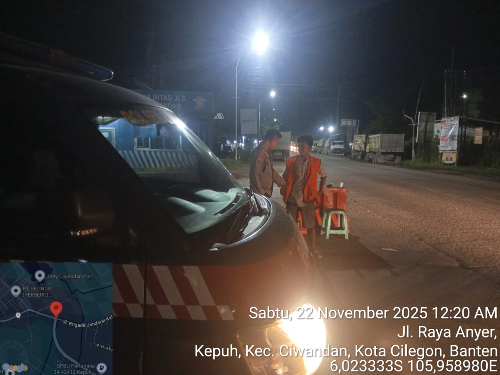 *Cilegon* - Personil Polsek Ciwandan Polres Cilegon Polda Banten Selalu Melaksanaan Kegiatan KRYD (Kegiatan Rutin Yang Ditingkatkan) Patroli Rutin malam hari di daerah hukum Polsek Ciwandan Guna Persempit Ruang Pelaku Tindak Kejahatan, Sabtu (22/11/2025).