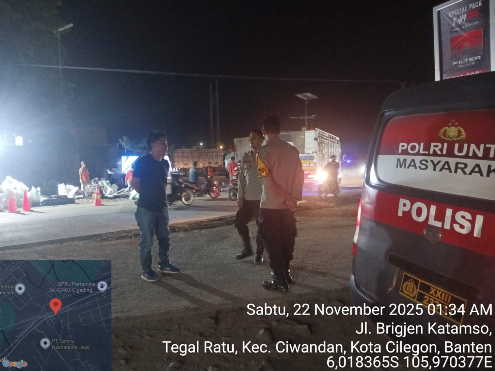 *Cilegon* - Personil Polsek Ciwandan Polres Cilegon Polda Banten Selalu Melaksanaan Kegiatan KRYD (Kegiatan Rutin Yang Ditingkatkan) Patroli Rutin malam hari di daerah hukum Polsek Ciwandan Guna Persempit Ruang Pelaku Tindak Kejahatan, Sabtu (22/11/2025).