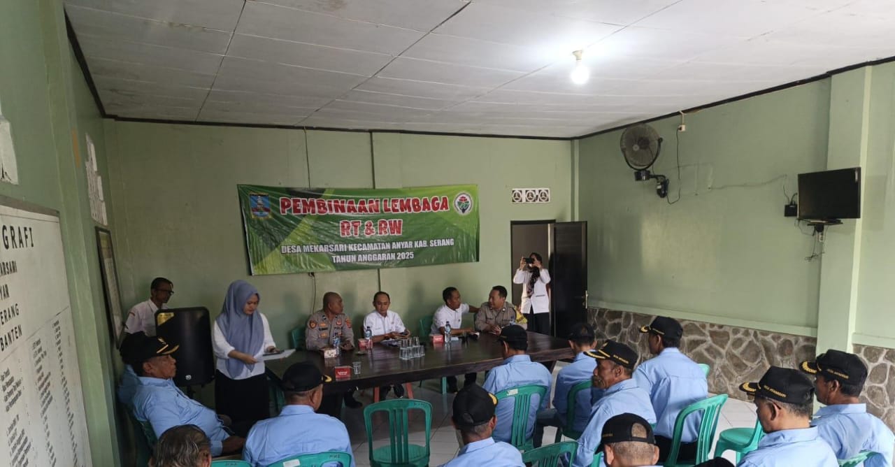 Polsek Anyar Hadiri Kegiatan Sosialisasi Pembinaan Lembaga RT dan RW Desa Mekarsari