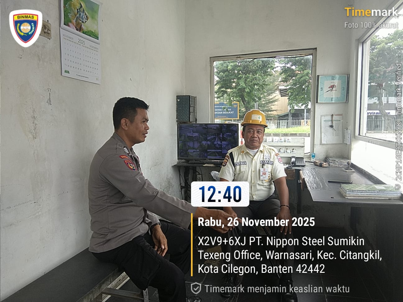 Cilegon - Demi Menjaga keamanan Daerah Hukum Polsek Ciwandan agar tetap kondusif, Personil Polsek Ciwandan Polres Cilegon Polda Banten Melakukan kegiatan sambang kamtibmas Dan Patroli Bersama Security, Rabu (26/11/2025).