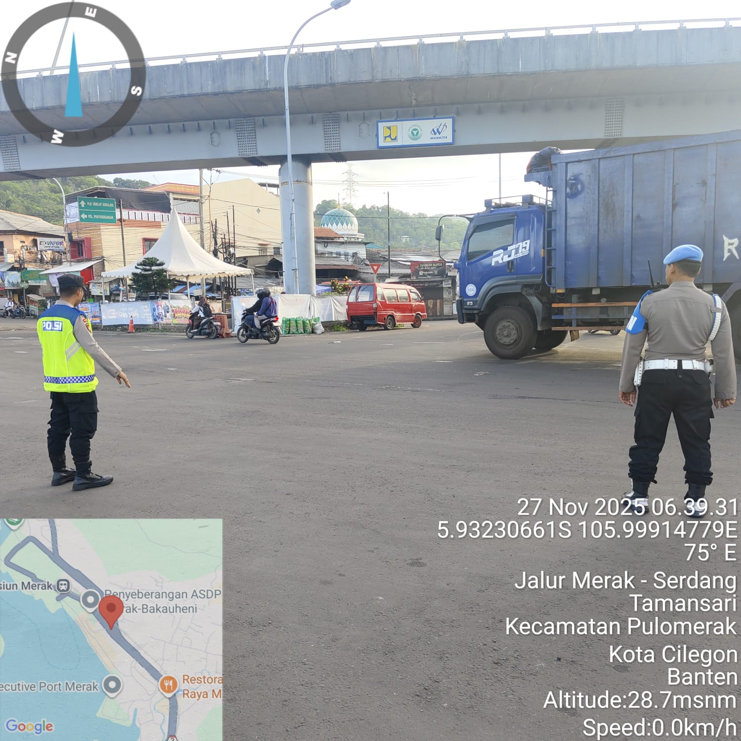 Cilegon - Dalam rangka peningkatan pelayanan prima kepada masyarakat, Kskp Merak Polres Cilegon Polda Banten melaksanakan pengaturan antrian R4 yang akan masuk ke Kapal Ferry di Pelabuhan Merak, Kamis (27/11/2025).