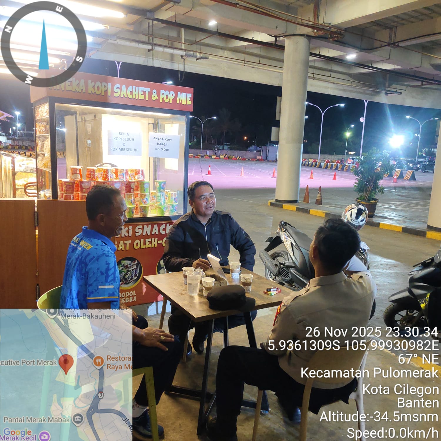 Cilegon - Personil Polsek Kskp Merak Polres Cilegon melaksanakan patroli di kawasan pelabuhan merak memberikan rasa aman dan damai, Kamis (27/11/2025)