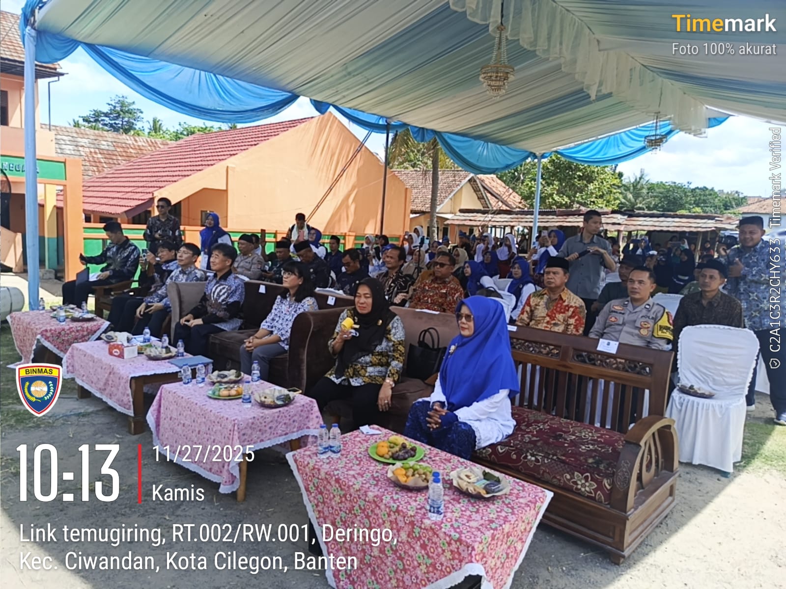 Cilegon - Waka Polsek Ciwandan AKP Uup M. Ma'ruf dan Bhabinkamtibmas Kelurahan Banjarnegara AIPTU Jamaludin menghadiri peresmian perbaikan tiga sekolah dasar—SDN Banjarnegara, SDN Pekalongan 1, dan SDN Babakan Turi—di Halaman SDN Banjarnegara, Link Temugiring, Kel. Banjarnegara, Kec. Ciwandan, Kota Cilegon, Kamis (27/11/2025).