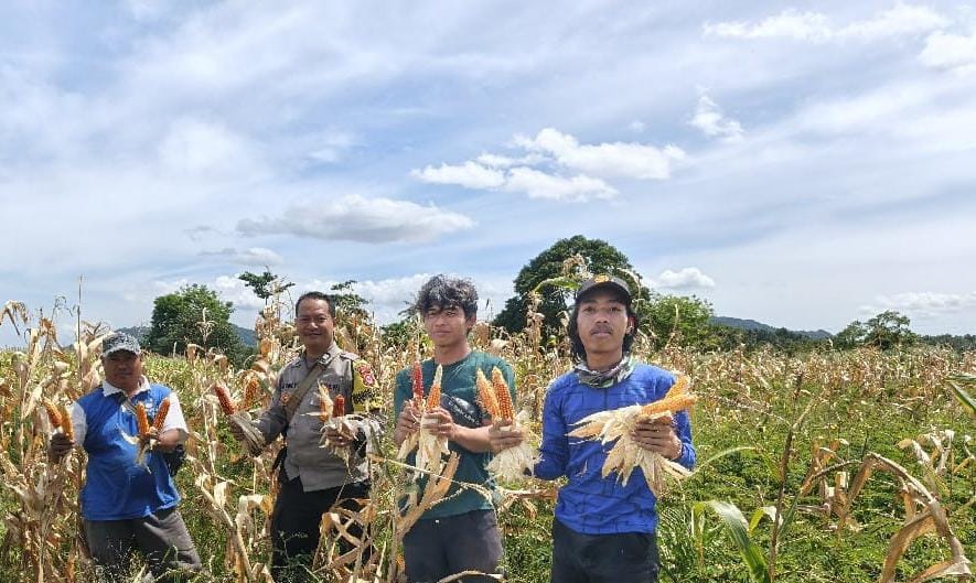 Bersama Poktan Polsek Anyar Melaksanakan Panen Tanaman Jagung
