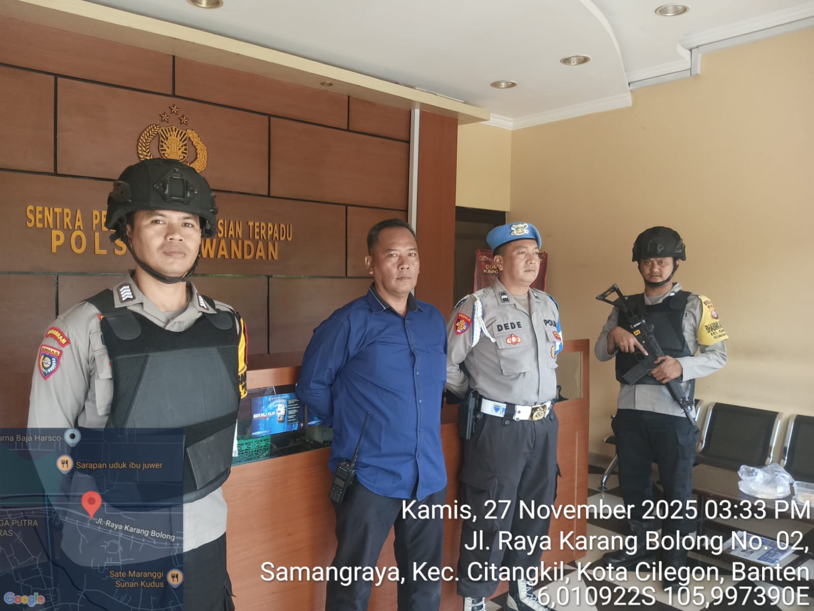 Kapolres Cilegon Polda Banten AKBP Dr. Martua Raja Taripar Laut Silitonga yang diwakili oleh Kapolsek Ciwandan Polres Cilegon Polda Banten KOMPOL Andi Suherman menerangkan bahwa sebagai langkah dalam mencegah timbulnya potensi gangguan dari luar terhadap keamanan kantor maupun keselamatan personel piket jaga, selalu memerintahkan kepada personel yang melaksanakan piket jaga Mako agar sewaktu-waktu menggelar kegiatan Sispam Mako.