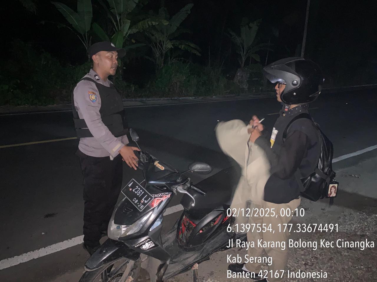 *Polres Cilegon* – Dalam Rangka Pencegahan Kejahatan Jalanan dan Memelihara situasi keamanan dan menjaga serta memberikan rasa aman dan nyaman di masyarakat,Salah satu upaya untuk mewujudkan hal tersebut sebagaimana yang dilakukan oleh Personil Polsek Cinangka Polres Cilegon Polda Banten melaksanakan giat patroli blue light malam hari hingga menjelang pagi, Selasa (02/12/2025).