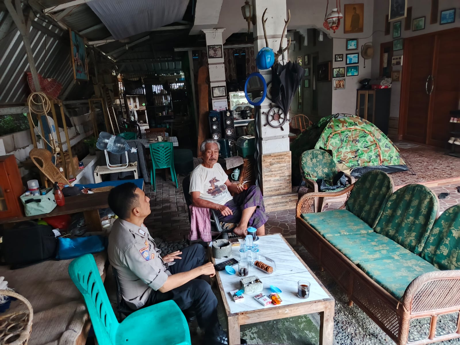 Anggota samapta Polsek Cilegon sambang kepada warga jalin keakraban menjaga keamanan di lingkungan wilayah hukum