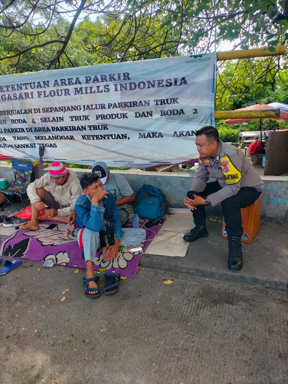 Jalin Silaturahmi, Personil Bhabinkamtibmas Pelabuhan Polsek KP Banten Berbincang Dengan Buruh Pelabuhan