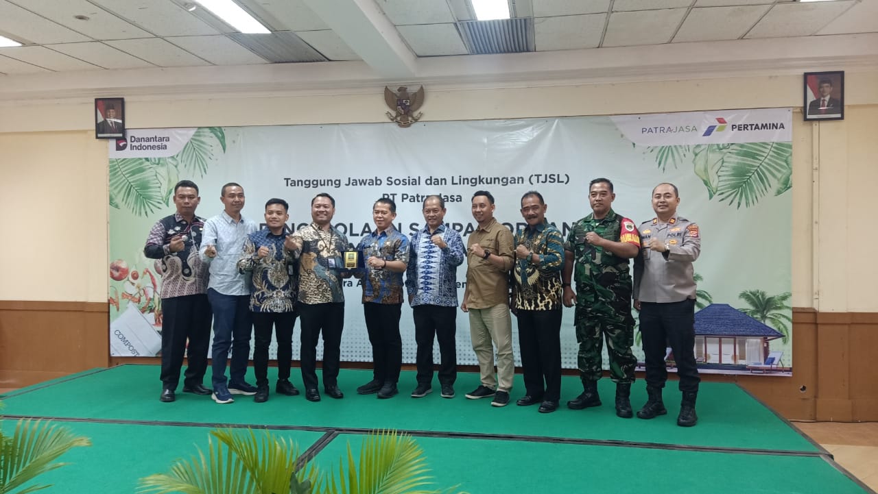 Anggota Polsek Anyar Hadiri Penyerahan Bantuan TJSL PT Patra Jasa untuk Pengolahan Sampah Organik Berbasis Pemberdayaan dsn Edukasi