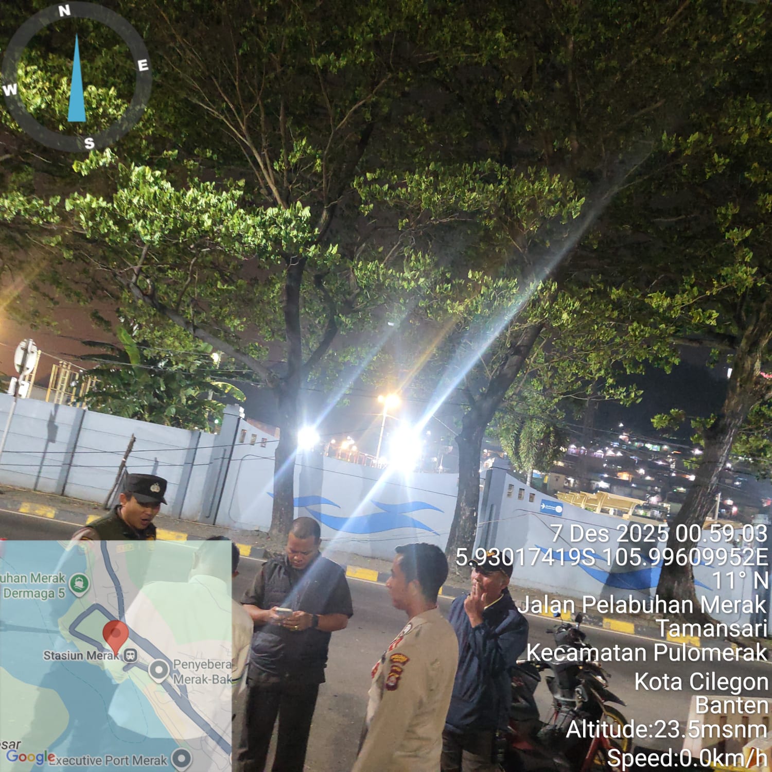 Cilegon - Personil Polsek Kskp Merak Polres Cilegon melaksanakan patroli di kawasan pelabuhan merak memberikan rasa aman dan damai, Minggu (07/12/2025)