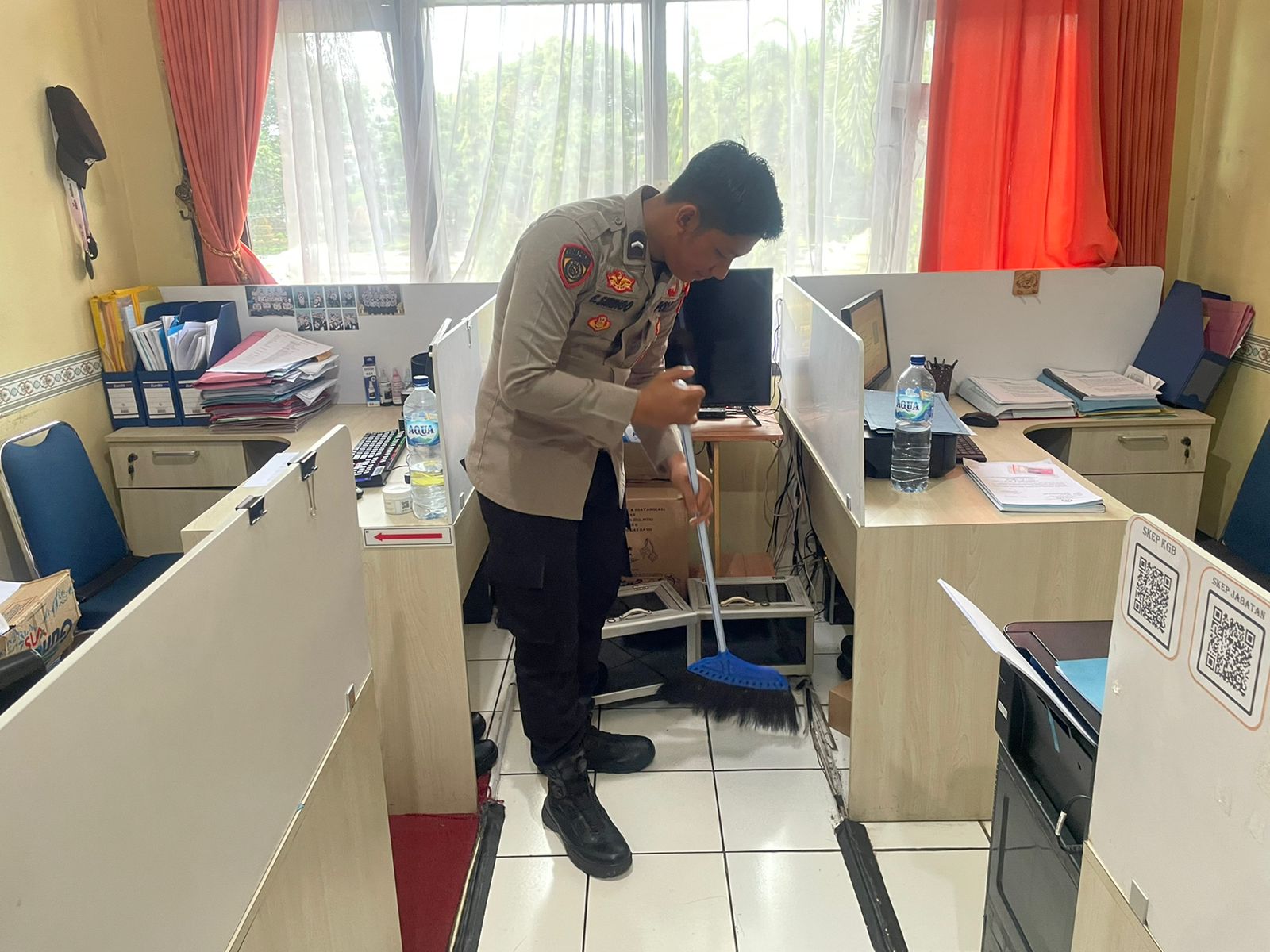 Anggota Bag SDM Polres Cilegon, sellalu melaksanakan aktivias rutin dalam membersihkan ruangan kerja.