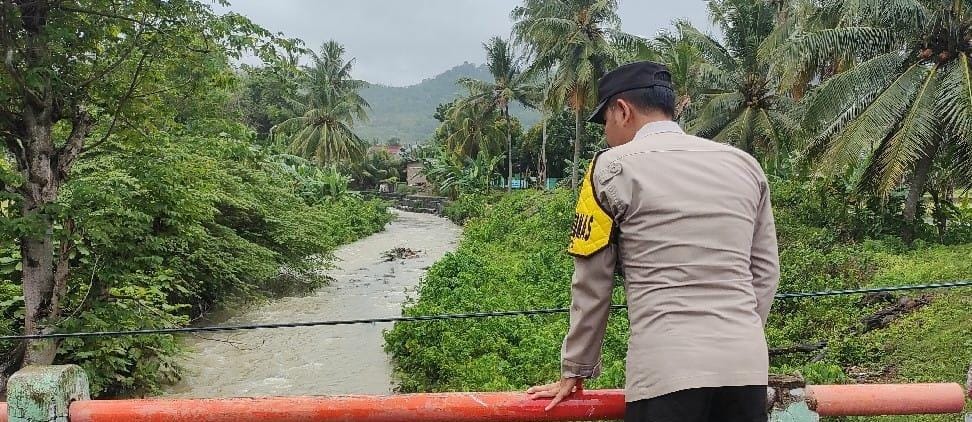Cilegon - Personel Polsek Anyar Polres Cilegon Polda Banten melaksanakan Patroli kewilayahan mengecek debit air di Sungai pasca Hujan antisipasi banjir di wilayah Kec. Anyar, Selasa (09/12).