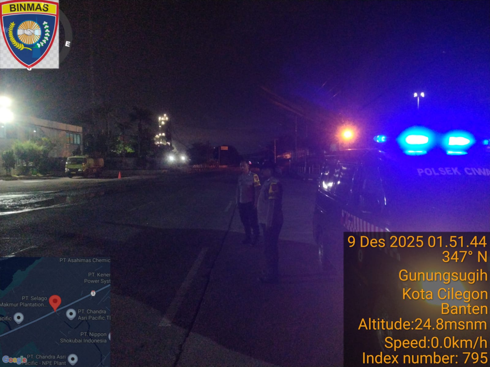 Polsek Ciwandan Polres Cilegon Polda Banten Patroli Malam Nyalakan Rotator Blue Light Kondusifkan Sitkamtibmas.