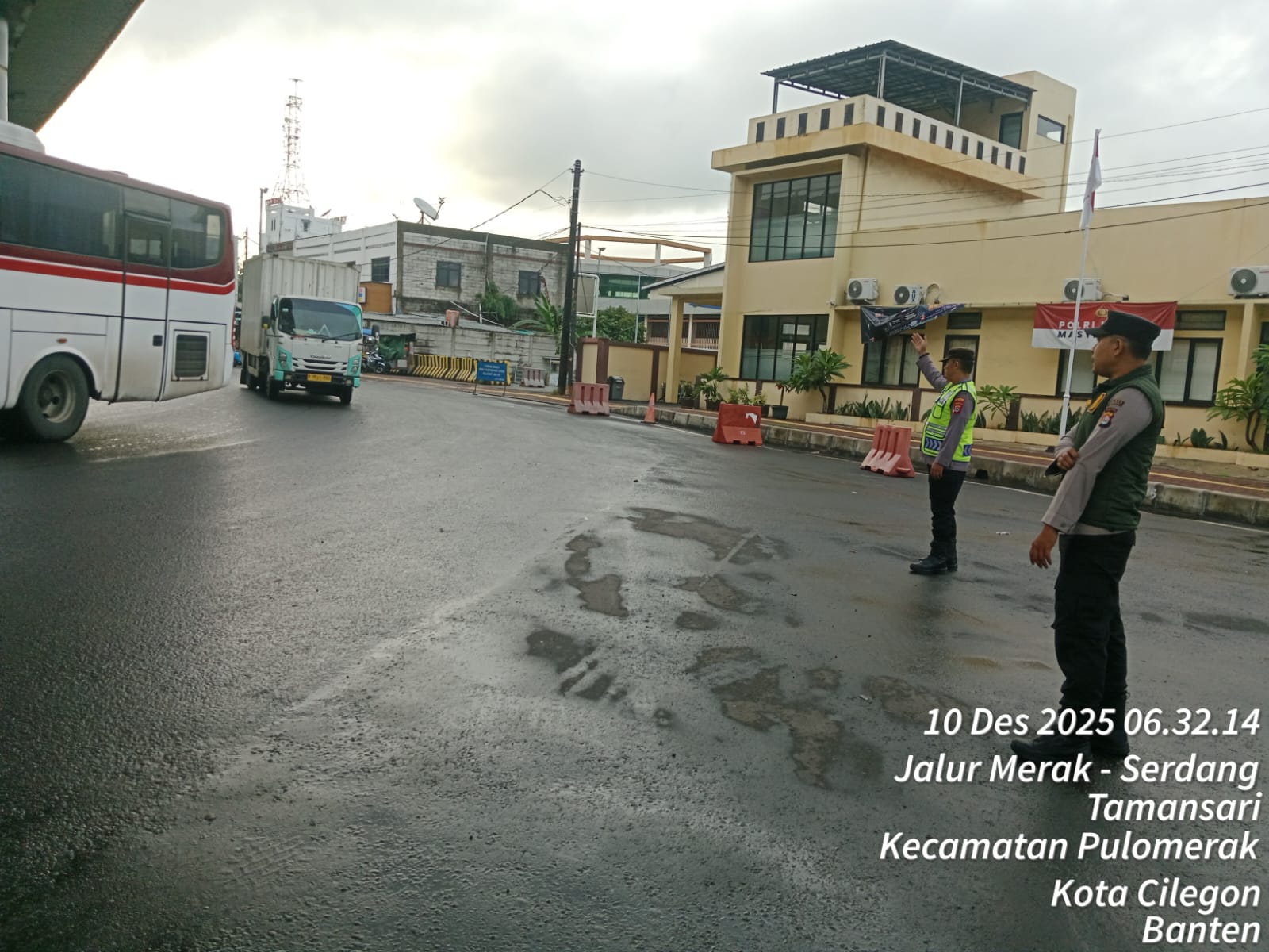 Cilegon - Dalam rangka peningkatan pelayanan prima kepada masyarakat, Kskp Merak Polres Cilegon Polda Banten melaksanakan pengaturan antrian R4 yang akan masuk ke Kapal Ferry di Pelabuhan Merak, Rabu (10/12/2025).