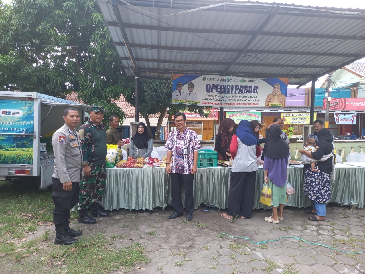 Bhabinkamtibmas Bripka Agustoni secara langsung memantau operasi pasar yang diselenggarakan di Halaman Kantor Kelurahan Kotabumi, Kecamatan Purwakarta, Kota Cilegon