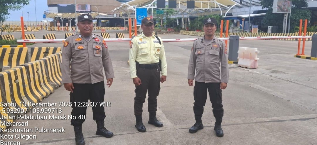 Cilegon - Personel Polsek Kskp Merak Polres Cilegon Polda Banten melaksanakan sambang dan patroli kawasan pelabuhan merak dalam rangka menjaga Harkamtibmas di Kawasan Pelabuhan Merak, Sabtu (13/12/2025).