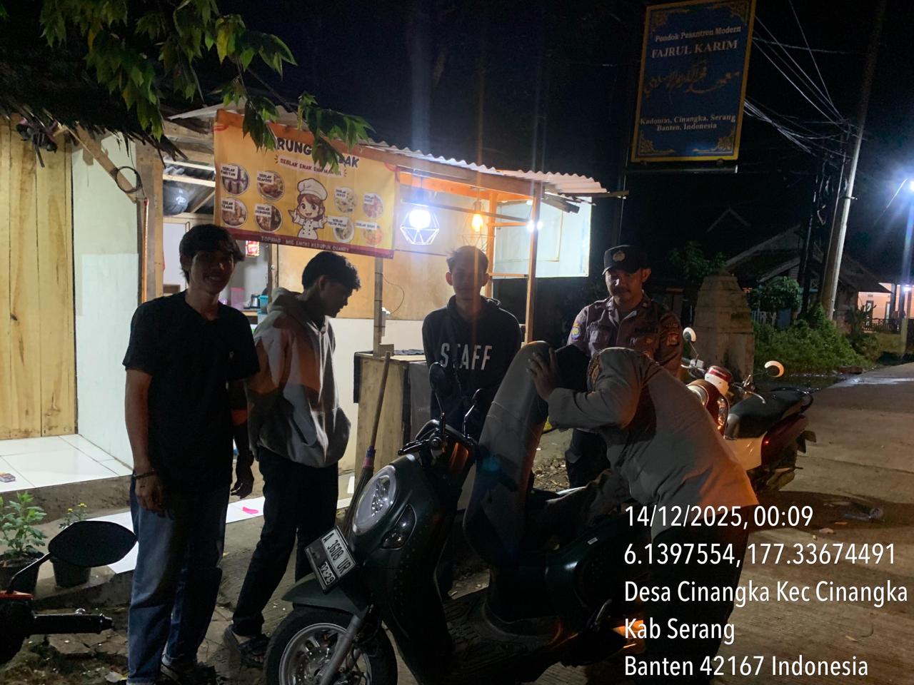 *Polres Cilegon* – Dalam Rangka Pencegahan Kejahatan Jalanan dan Memelihara situasi keamanan dan menjaga serta memberikan rasa aman dan nyaman di masyarakat,Salah satu upaya untuk mewujudkan hal tersebut sebagaimana yang dilakukan oleh Personil Polsek Cinangka Polres Cilegon Polda Banten melaksanakan giat patroli blue light malam hari hingga menjelang pagi, Minggu (14/12/2025).