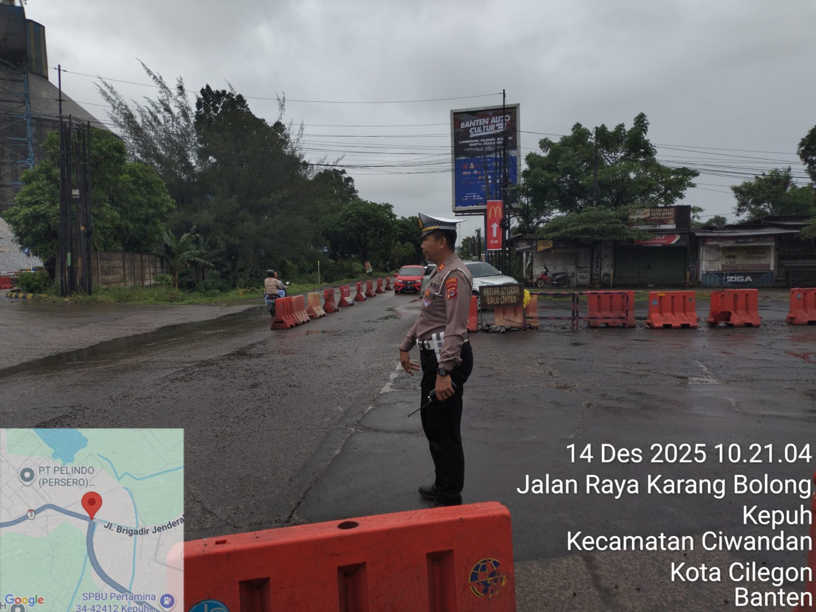 Cilegon - Personil Unit Lantas Polsek Ciwandan Polres Cilegon Polda Banten melaksanakan kegiatan monitoring jalur wisata di depan Pos Lantas JLS Ciwandan, Minggu (14/12/2025).