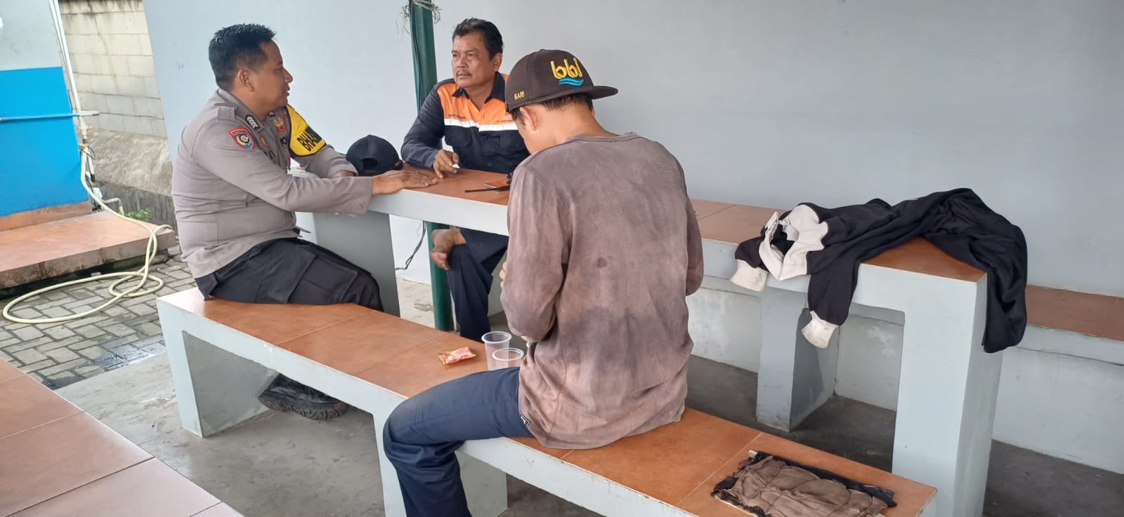 Jalin Silaturahmi, Bhabinkamtibmas Pelabuhan Polsek KP Banten berbincang ke Buruh Pelabuhan