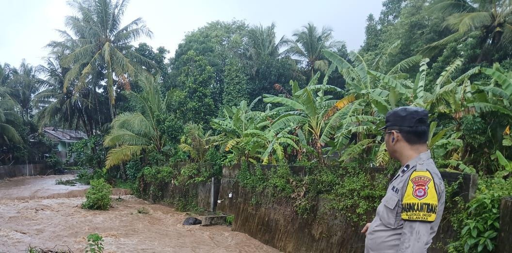Dalam Siaga Bencana Personel Polsek Anyar Giat Patroli Dan Pantau Debit Air Wilayah Pasca Hujan