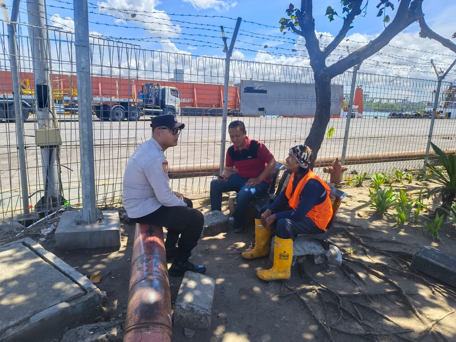 Jalin Silaturahmi, Bhabinkamtibmas Polsek KSKP Banten Berbincang ke Buruh Pelabuhan