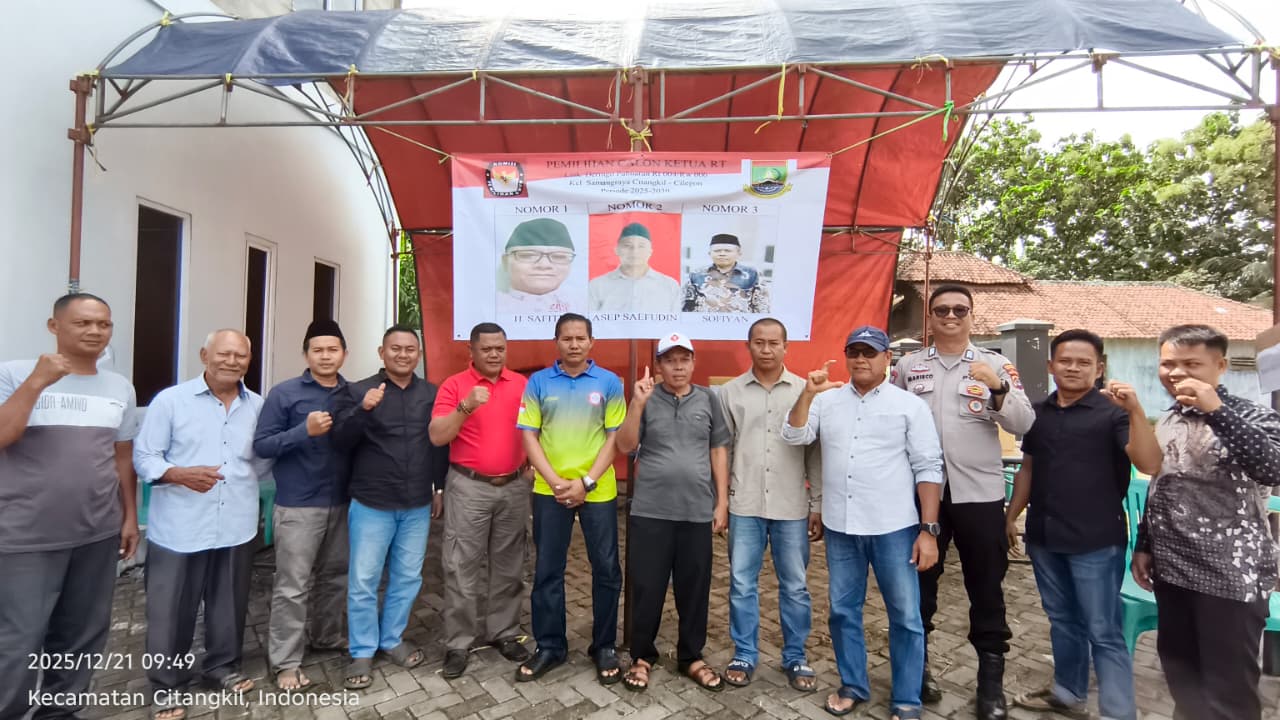 Cilegon -  Bhabinkamtibmas Kelurahan Tamanbaru Polsek Ciwandan Polres Cilegon Polda Banten AIPDA Ediyanto menghadiri pemilihan Ketua RW 003 Lingkungan Kubang Lesung kelurahan Tamanbaru Kecamatan Citangkil Kota Cilegon, Minggu (21/12/2025).