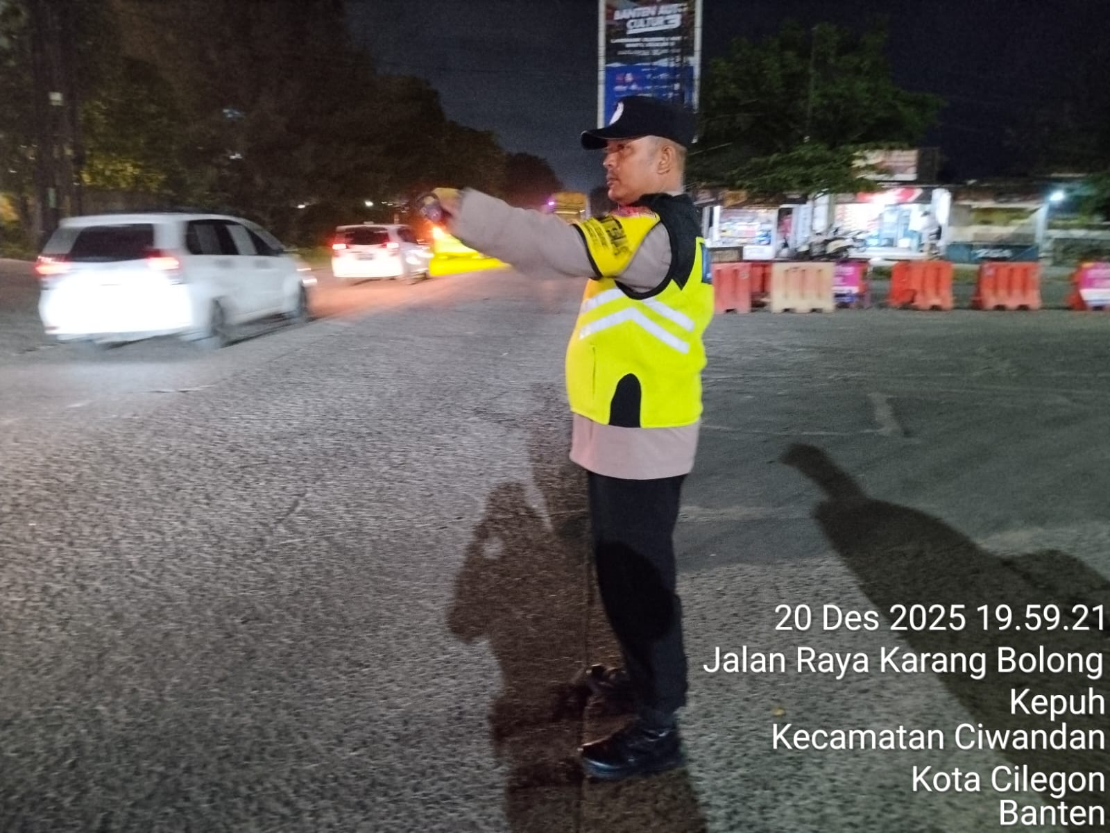 Cilegon - Guna Menciptakan kelancaran arus Mudik tahun 2025 yang menuju Pelabuhan Pelindo Dan jalur wisata yang ada di daerah hukum Polsek Ciwandan Polres Cilegon Polda Banten,Pospam 5 Ciwandan berlakukan rekayasa Lalu lintas, Minggu (21/12/2025).
