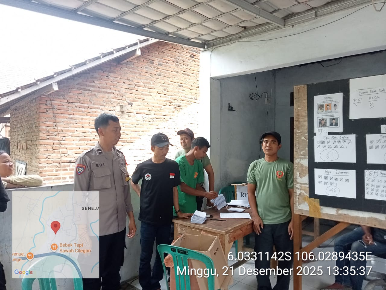 *Cilegon* -  Bhabinkamtibmas Kelurahan Tamanbaru Polsek Ciwandan Polres Cilegon Polda Banten AIPDA Ediyanto menghadiri pemilihan Ketua RW 003 Lingkungan Kubang Lesung kelurahan Tamanbaru Kecamatan Citangkil Kota Cilegon, Minggu (21/12/2025).