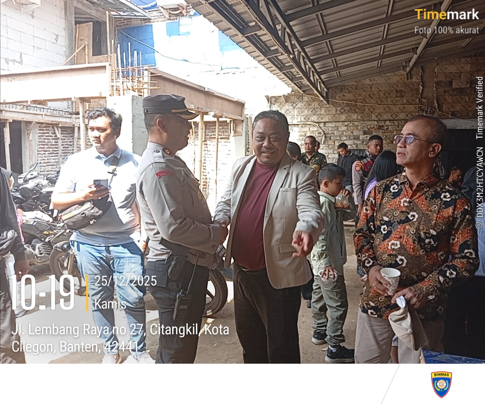 Cilegon – Kapolsek Ciwandan Beserta Personil Polsek Ciwandan Polres Cilegon Polda Banten melaksanakan Pengamanan Tempat Ibadah Umat Kristiani pada kegiatan Ibadah Perayaan Natal Tahun 2023 Di Rumah Doa GBI Pimpinan Pdt. Paul Lingkungan Lembang RT. 002 RW. 004 Kecamatan Citangkil Kota Cilegon, Kamis (25/12/2025).