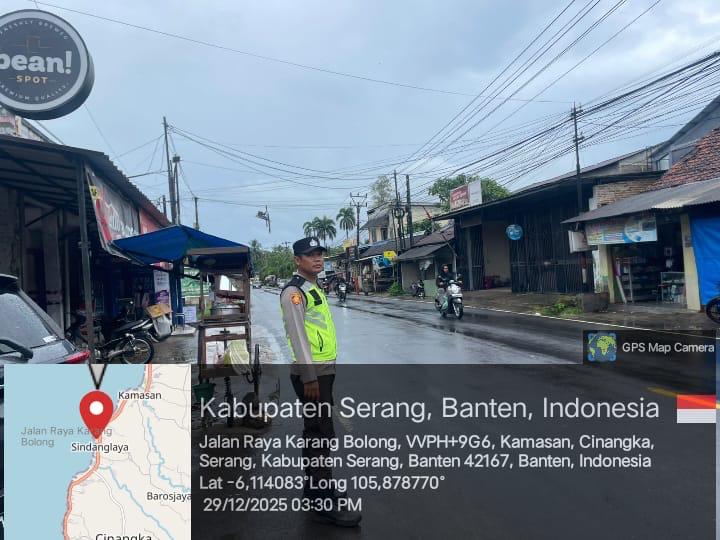 _*Polres Cilegon*_ | Laksanakan peningkatan pelayanan Prima, Polsek Cinangka Polres Cilegon Polda Banten melaksanakan pengaturan arus lalu lintas, Selasa (30/12/2025)