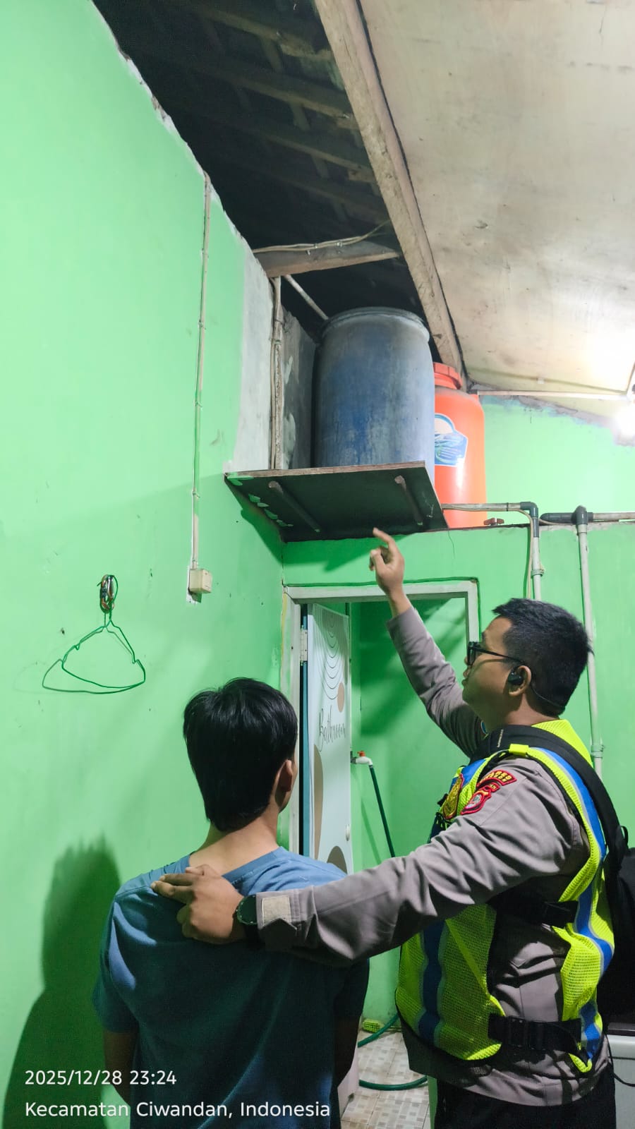 Pelaku diduga masuk ke kontrakan korban dengan cara memanjat plafon kamar mandi. Korban alami kerugian Rp2 juta. Pelaku kini diamankan di Polsek Ciwandan, proses mediasi dengan korban sedang berlangsung.