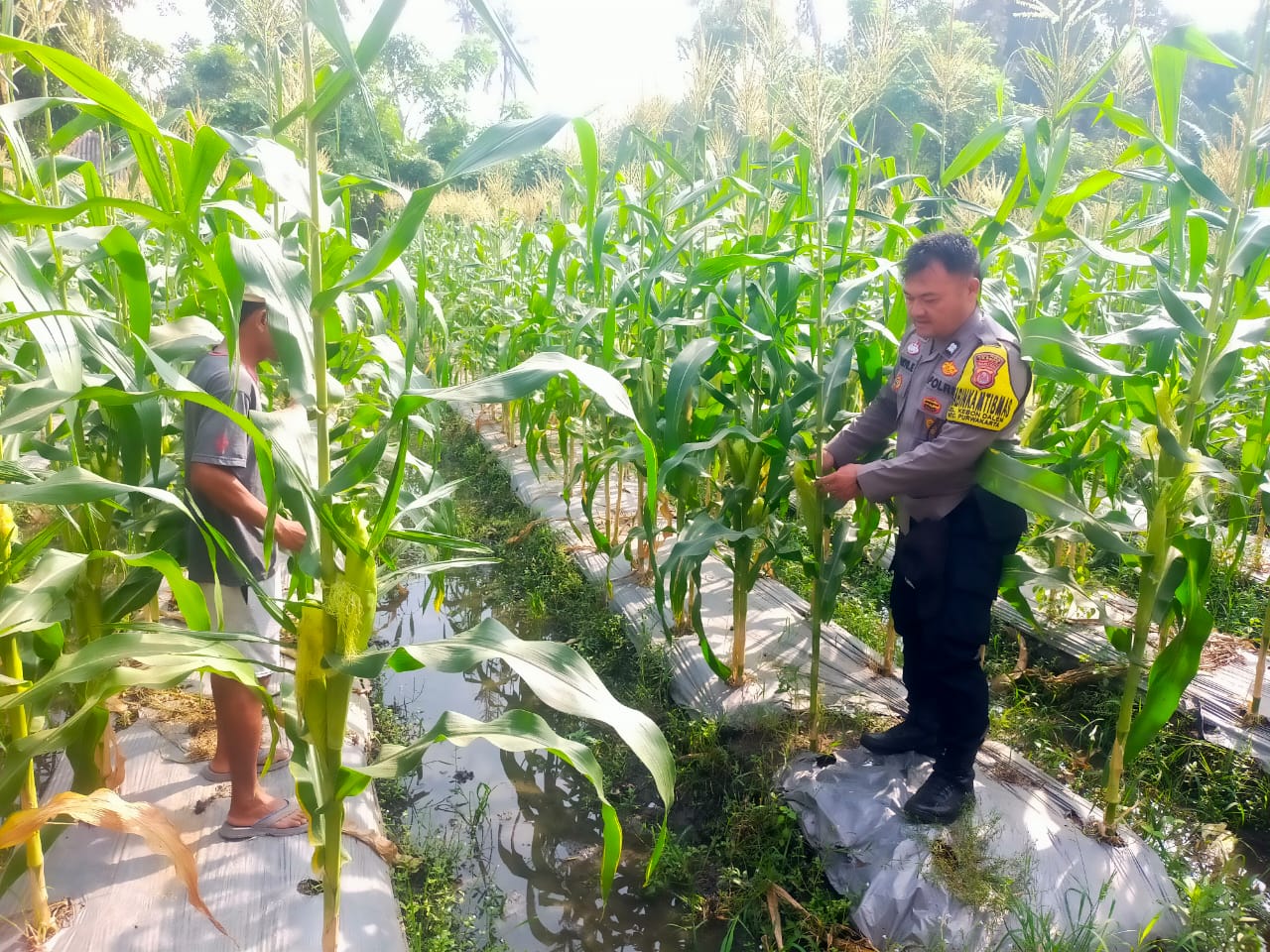 Personil Bhabinkamtibmas Polsek Purwakarta Gelar Pendampingan Cek dan Kontrol Tanaman Jagung Untuk Ketahanan Pangan