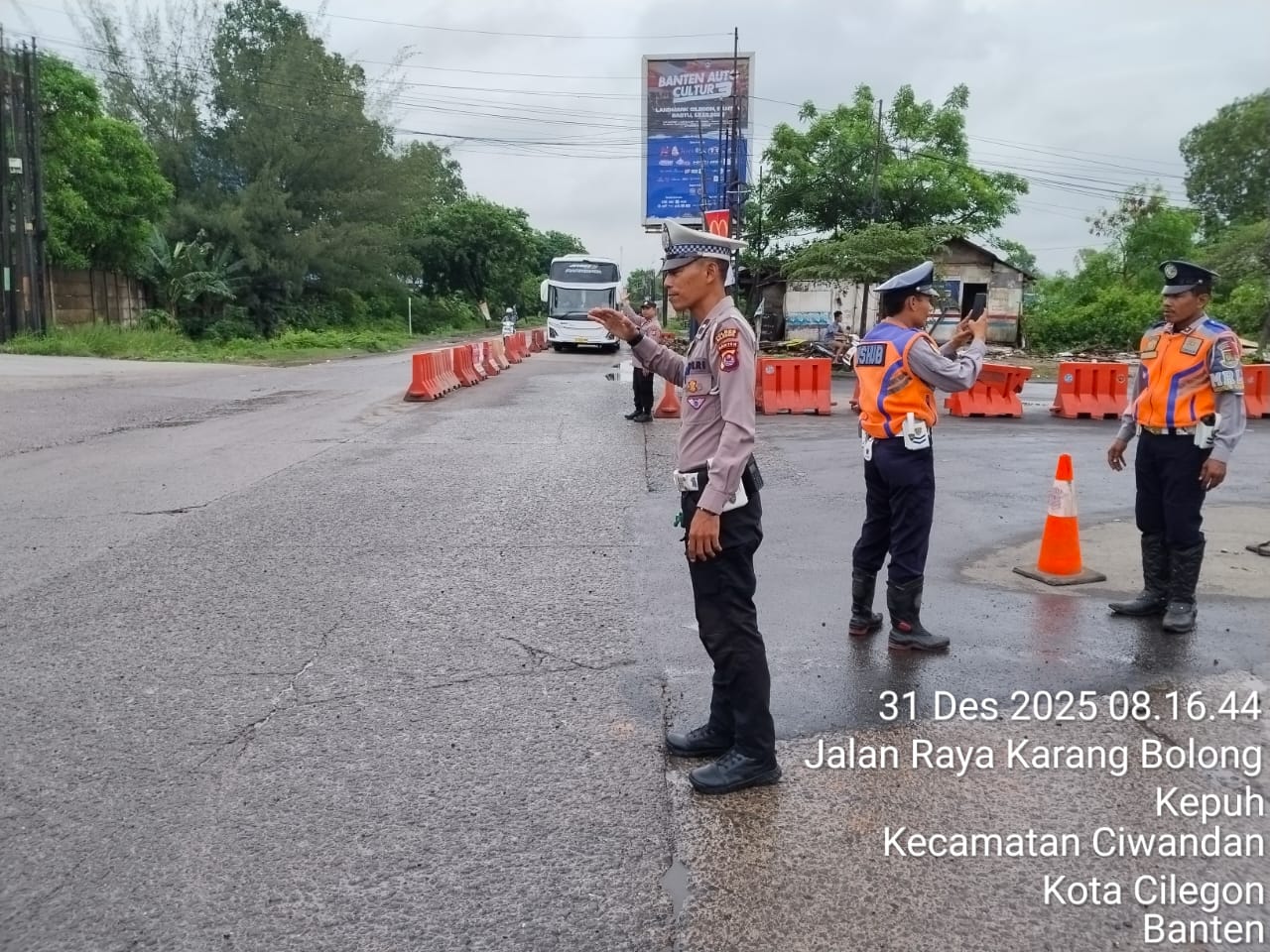 Kapolres Cilegon Polda Banten AKBP Dr. Martua Raja Taripar Laut Silitonga yang di wakili Kapolsek Ciwandan Polres Cilegon Polda Banten Kompol Andi Suherman mengatakan, "Guna terciptanya kelancaran arus Libur Natal Dan tahun Baru 2025-2026, Pospam 5 Ciwandan merekayasa arus lalu lintas yang akan menuju Pelabuhan Pelindo Banten.