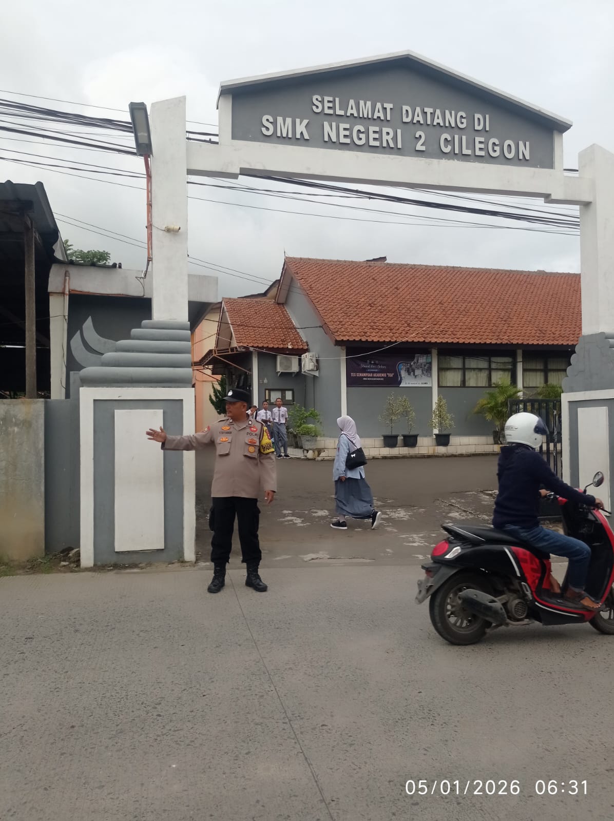 Bhaninkamtibmas Polsek Ciwandan Pengaturan Lalu-Lintas Pada Jam Masuk Sekolah
