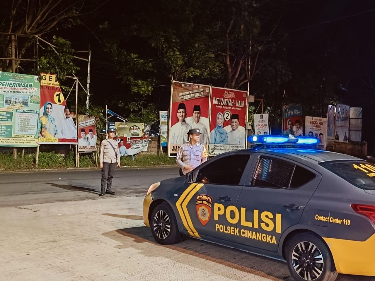 *POLRES CILEGON* - Patroli malam hingga dini hari ini rutin dilakukan oleh anggota Kepolisian Polsek Cinangka Polres Cilegon Polda Banten.